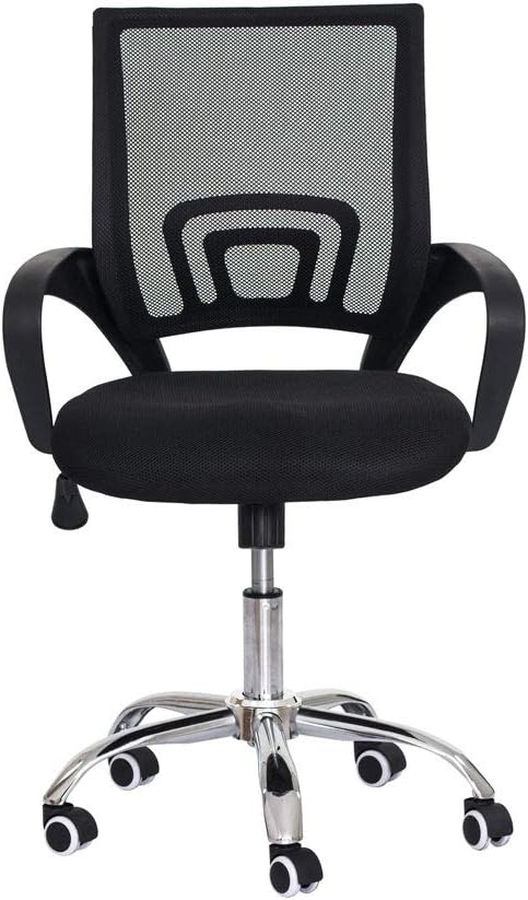 - Encosto revestido em tela mesh, Assento com estrutura em madeira , estofado e revestido em tela mesh cor Preto e Braços em polipropileno.