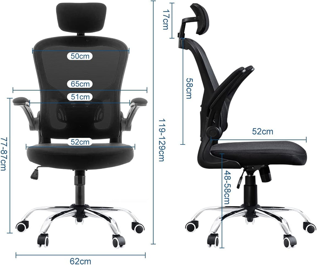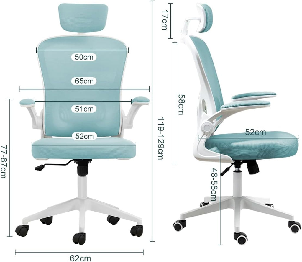 🏡【Cadeira de escritório confortável】Para alguns usuários com pernas mais longas, a cadeira ergonômica é uma boa escolha. Você pode ajustar livremente a altura do assento e permitir que seus pés toquem o chão de forma confortável. Tamanho da cadeira inteira (LxPxA): 62*63*45-119-129 CM. Capacidade máxima: 200KG.