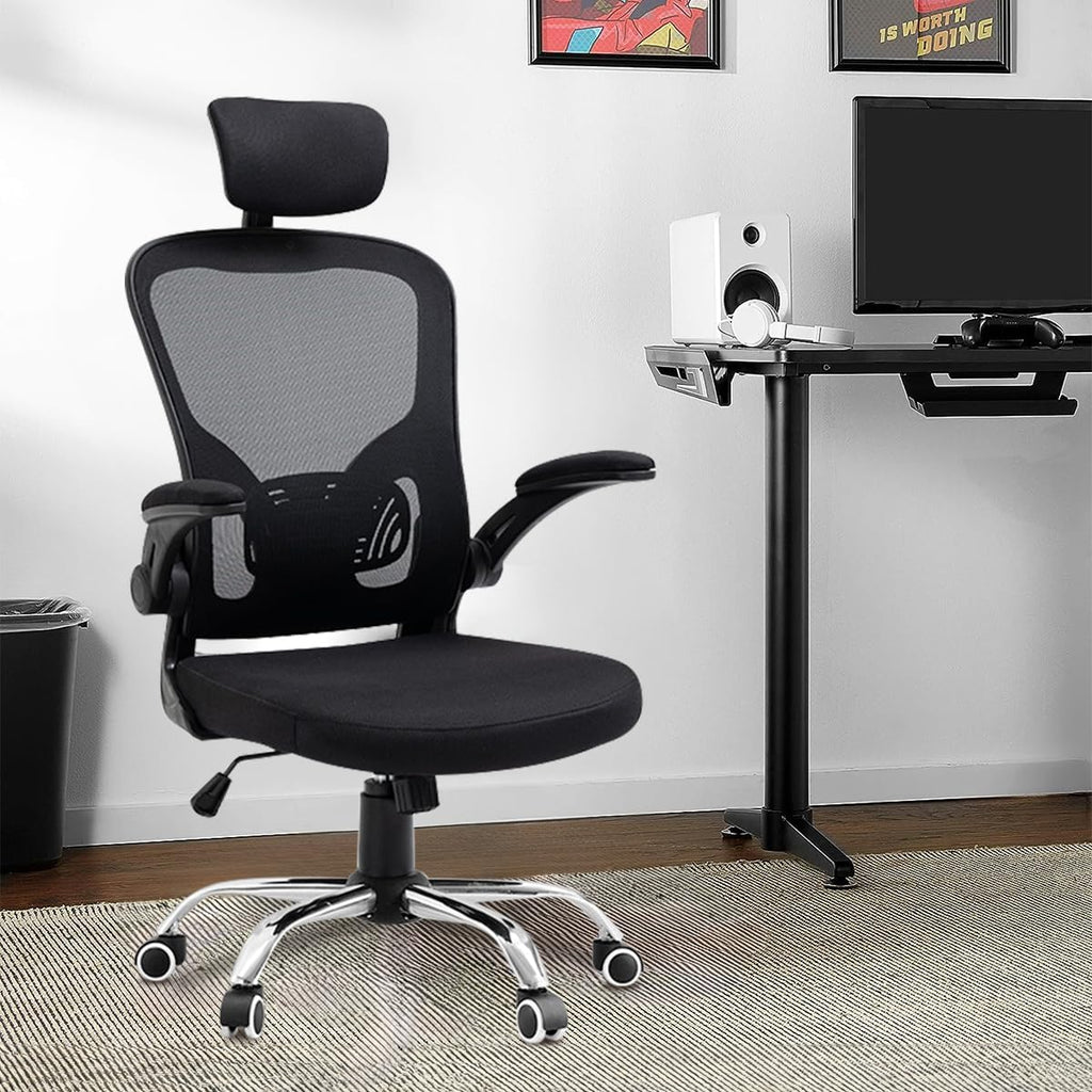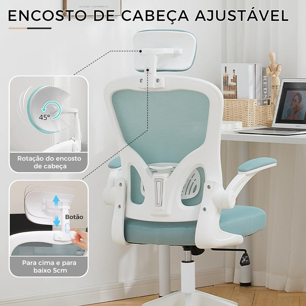 🏡【Encosto com malha ventilada】A cadeira de escritório com encosto alto se encaixa perfeitamente na curva da coluna para melhor suporte da lombar e cervical. A malha respirável e elástica foi projetada para mantê-lo sempre fresco e confortável.