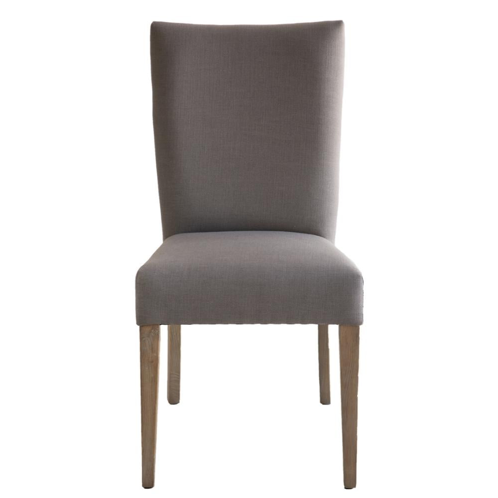 Crie um visual fabuloso e contemporâneo em sua sala de jantar com esta cadeira. Foi estofado em um material cinza elegante e apresenta uma impressionante parte traseira alargada.