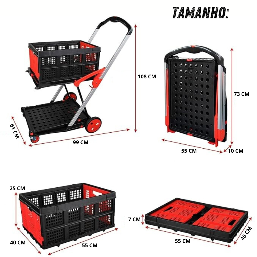 Carrinho Dobrável de Compras + 2 Caixas de Brinde - LoadMax